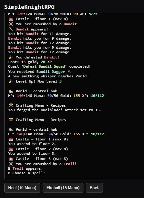 | Tags | Dragons, Fantasy, knight, Medieval, Short, simpleknightrpg, Swords, Text based |